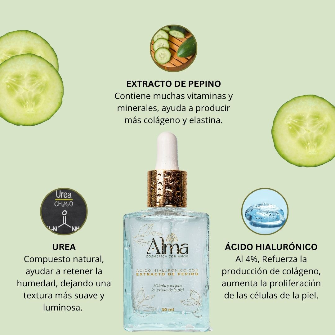 🧬 ¿Qué hace único este Ácido Hialurónico con Extracto de Pepino?